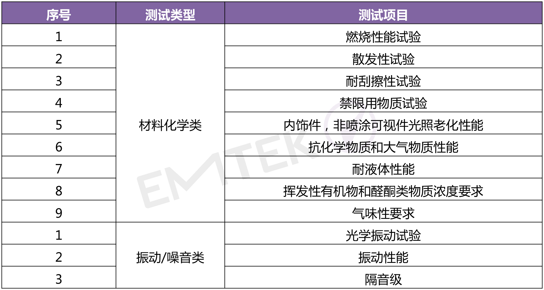 4. 材料化學(xué)試驗(yàn):考核后視鏡及其噴漆件材料化學(xué)性能,比如散發(fā)性、耐刮擦、抗化學(xué)物質(zhì)和大氣物質(zhì)性能、耐液體性能、有毒性、耐鹽霧性能、揮發(fā)性有機(jī)物和醛酮類物質(zhì)濃度要求、有害物質(zhì)限定試驗(yàn)、燃燒特性試驗(yàn)等。