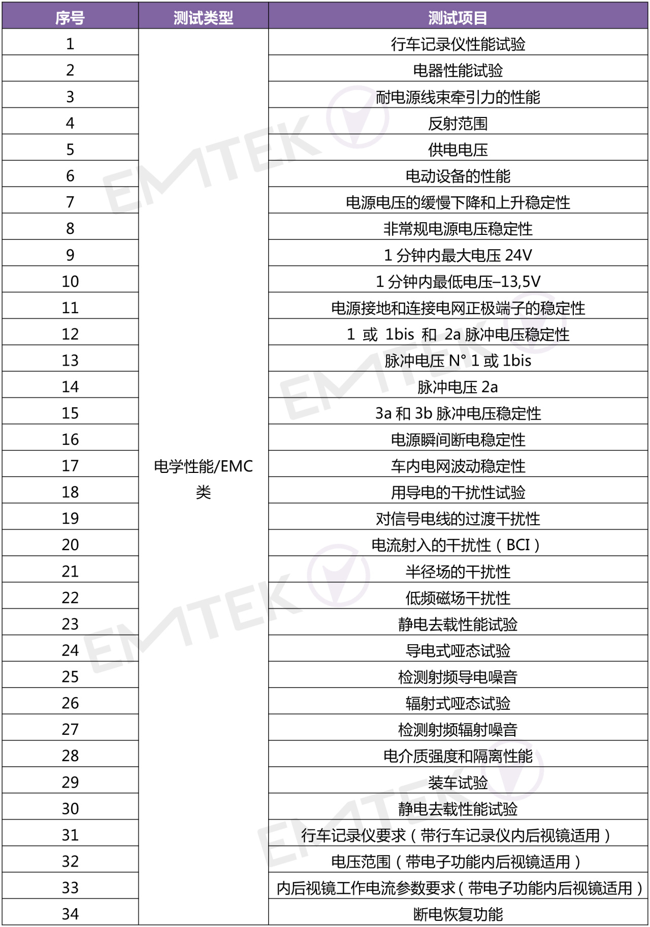 3. 電學(xué)試驗(yàn):考核后視鏡及其相關(guān)電器件(如轉(zhuǎn)向燈等)環(huán)境和功能試驗(yàn)前后的電學(xué)性能,驗(yàn)證其是否能正常使用,包含行車記錄儀要求、斷電恢復(fù)功能、電動(dòng)設(shè)備性能、電源電壓的緩慢下降和上升穩(wěn)定性、電壓穩(wěn)定性等;