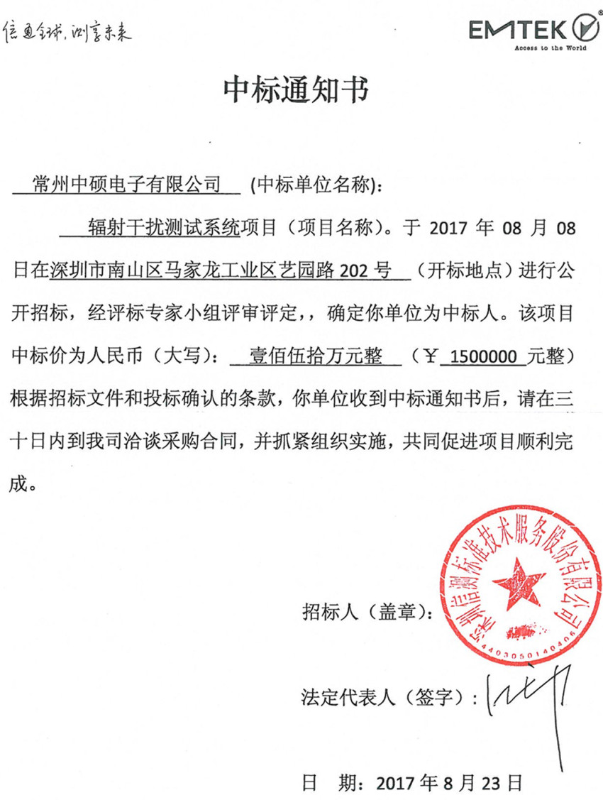 常州中碩中標(biāo)通知書(shū)