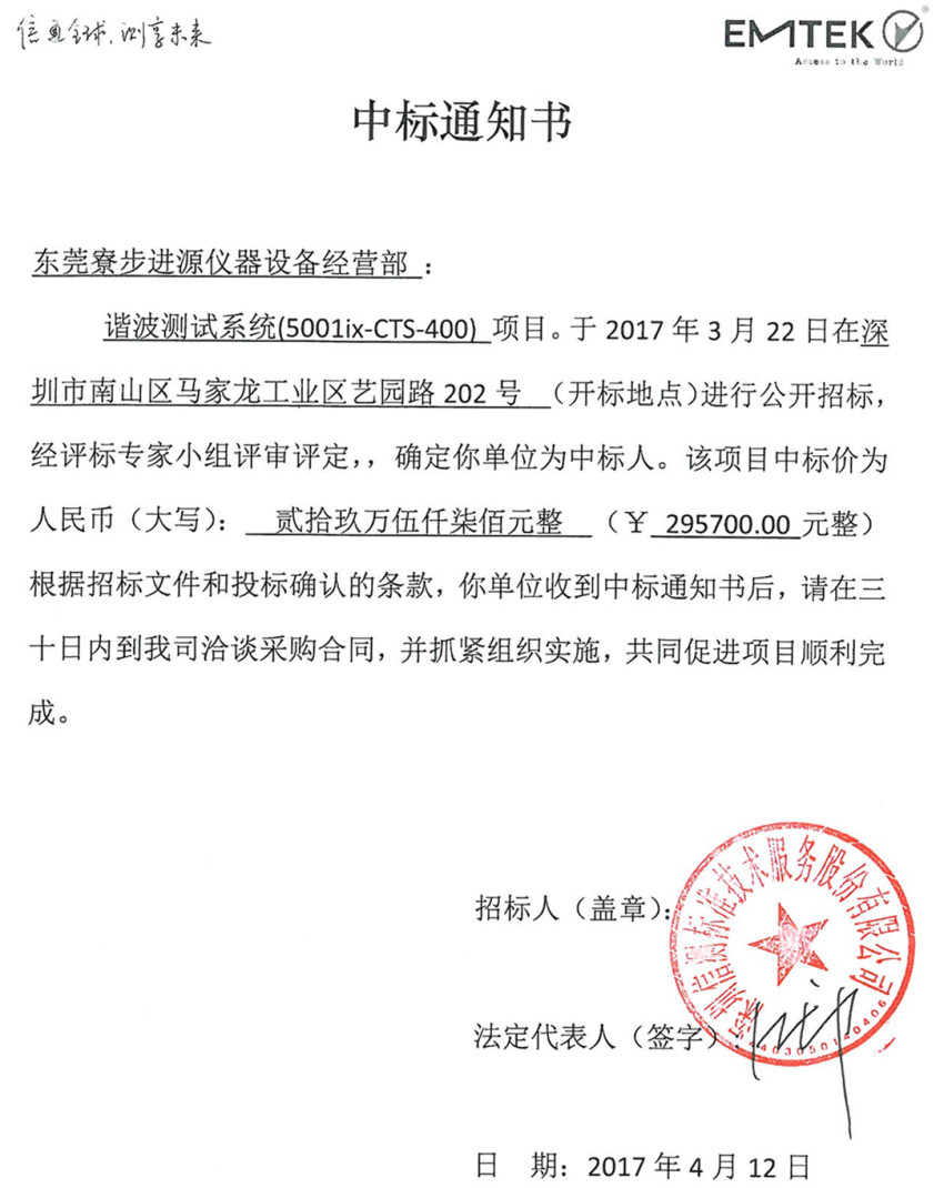 進(jìn)源儀器設(shè)備中標(biāo)通知書