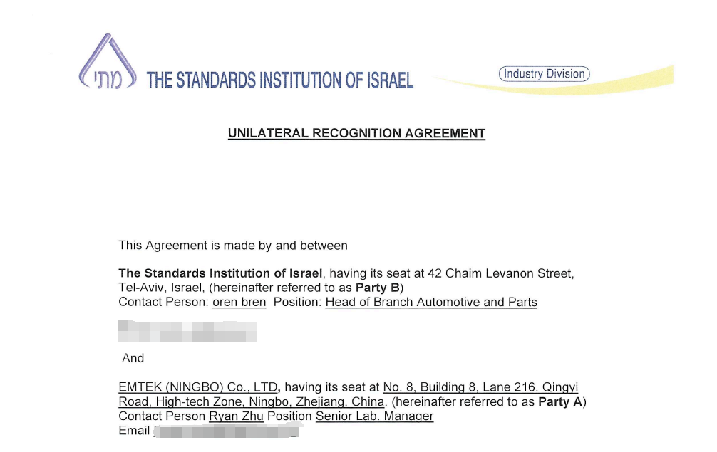 近日,寧波市信測檢測技術(shù)有限公司與以色列標(biāo)準(zhǔn)協(xié)會The Standards Institution of Israel(簡稱SII)簽署合作協(xié)議,順利成為SII官方認(rèn)可實驗室,可為企業(yè)提供產(chǎn)品出口以色列的測試、認(rèn)證和法規(guī)指導(dǎo)服務(wù)。
