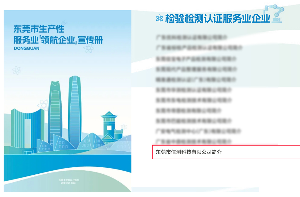 領(lǐng)航企業(yè)是產(chǎn)業(yè)發(fā)展的主力軍。近期,根據(jù)《東莞市生產(chǎn)性服務(wù)業(yè)“領(lǐng)航計(jì)劃”實(shí)施方案》,廣東省東莞市發(fā)展和改革局牽頭生產(chǎn)性服務(wù)業(yè)重點(diǎn)領(lǐng)域主管部門,以“免申入庫(kù)”方式遴選了首批96家生產(chǎn)性服務(wù)業(yè)領(lǐng)航企業(yè)。經(jīng)過評(píng)定,東莞市信測(cè)科技有限公司榮獲東莞市首批生產(chǎn)性服務(wù)業(yè)“領(lǐng)航企業(yè)”!