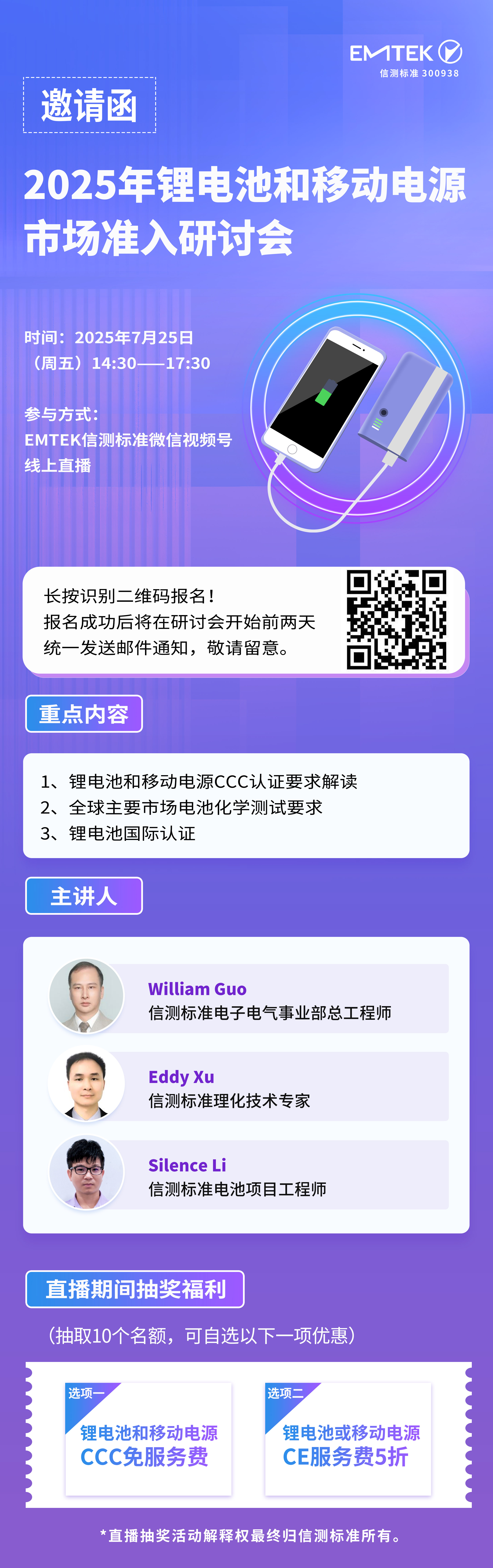 邀請(qǐng)函|與您相約7月25日2025年鋰電池和移動(dòng)電源市場準(zhǔn)入線上研討會(huì)