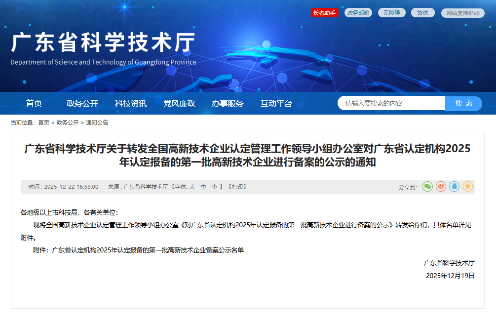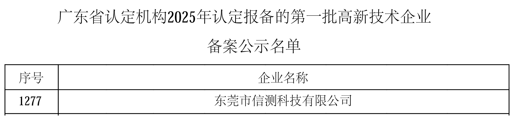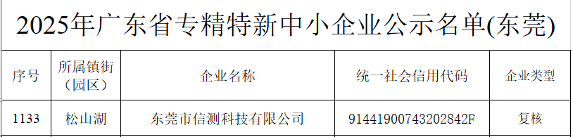 近日,廣東省工業(yè)和信息化廳及科學(xué)技術(shù)廳陸續(xù)公布了2025年認(rèn)定名單,東莞市信測科技有限公司(以下簡稱:東莞信測)憑借在檢測領(lǐng)域卓越的技術(shù)創(chuàng)新能力、精細(xì)化的管理體系與突出的市場競爭力,成功喜獲兩項(xiàng)重磅認(rèn)定: