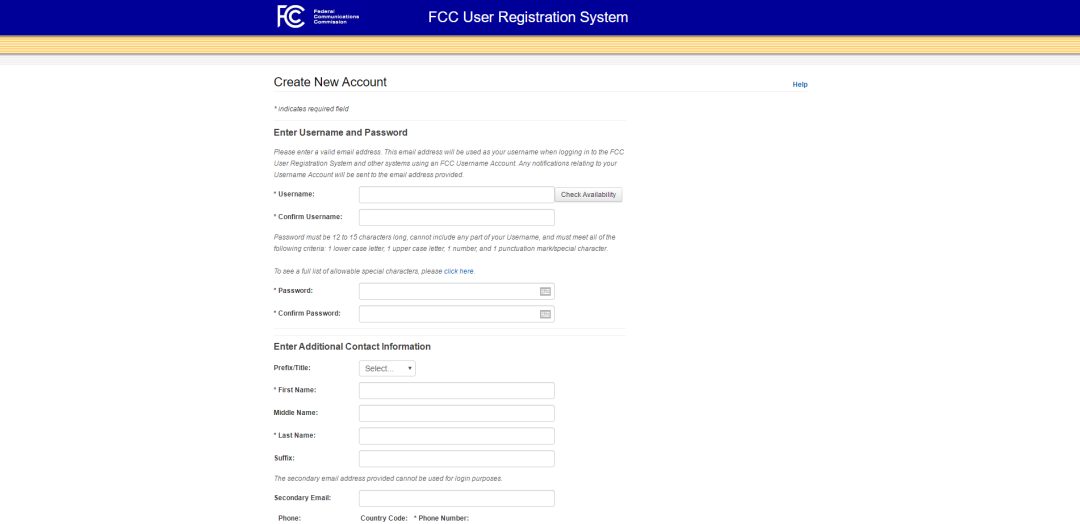 **請輸入有效的電子郵件地址。當您使用FCC用戶名帳戶登錄FCC用戶注冊系統(tǒng)和其他系統(tǒng)時,此電子郵件地址將用作您的用戶名。任何與您的用戶名帳戶相關的通知都將發(fā)送到您提供的電子郵件地址。可以檢查郵件地址有效性。