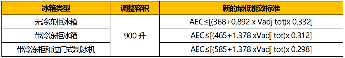 自2025 年4 月1 日起,在新加坡銷售的所有冰箱都必須符合修訂后的MEPS 要求,具體要求如下表: