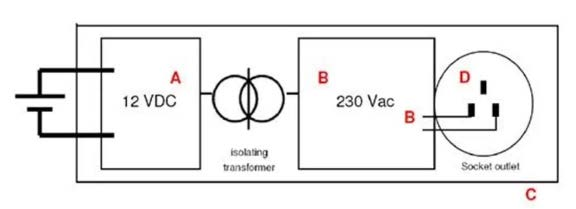 (2)從逆變輸出(B)到可接觸表面(C):雙重或加強絕緣