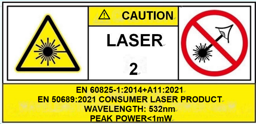 在滿(mǎn)足EN 60825-1:2014/A11 對(duì)于標(biāo)簽要求的基礎(chǔ)上,需要新增:EN 50689:2021 的標(biāo)準(zhǔn)號(hào)