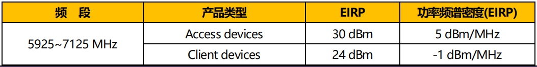 新決議將5925-7125 MHz 定義為非管制頻段,其運行條件如下所示,并僅允許應(yīng)用于室內(nèi)低功耗設(shè)備。
