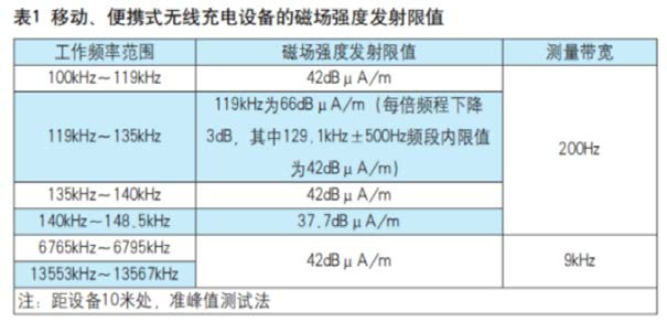 (3) 磁場強(qiáng)度發(fā)射限值需滿足表1 要求;