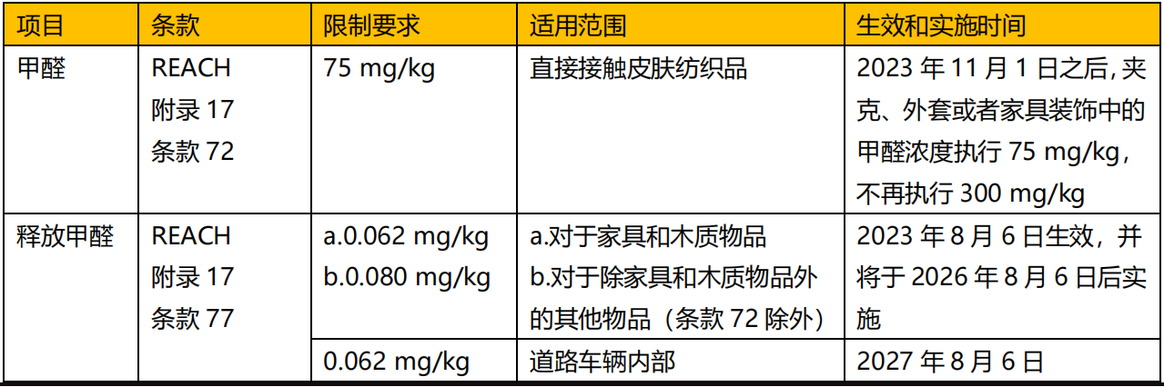 歐盟 REACH 附錄 17 條款規(guī)定紡織品中甲醛濃度執(zhí)行發(fā)生變更