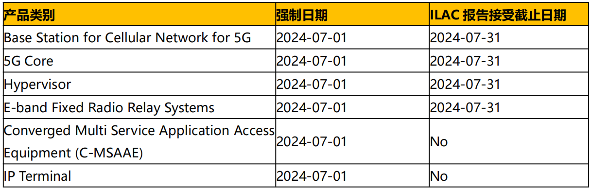 2. 自 2024 年 7 月 1 日起,蜂窩終端設備(非移動電話)必須支持 4G,否則無法申請型式認證。