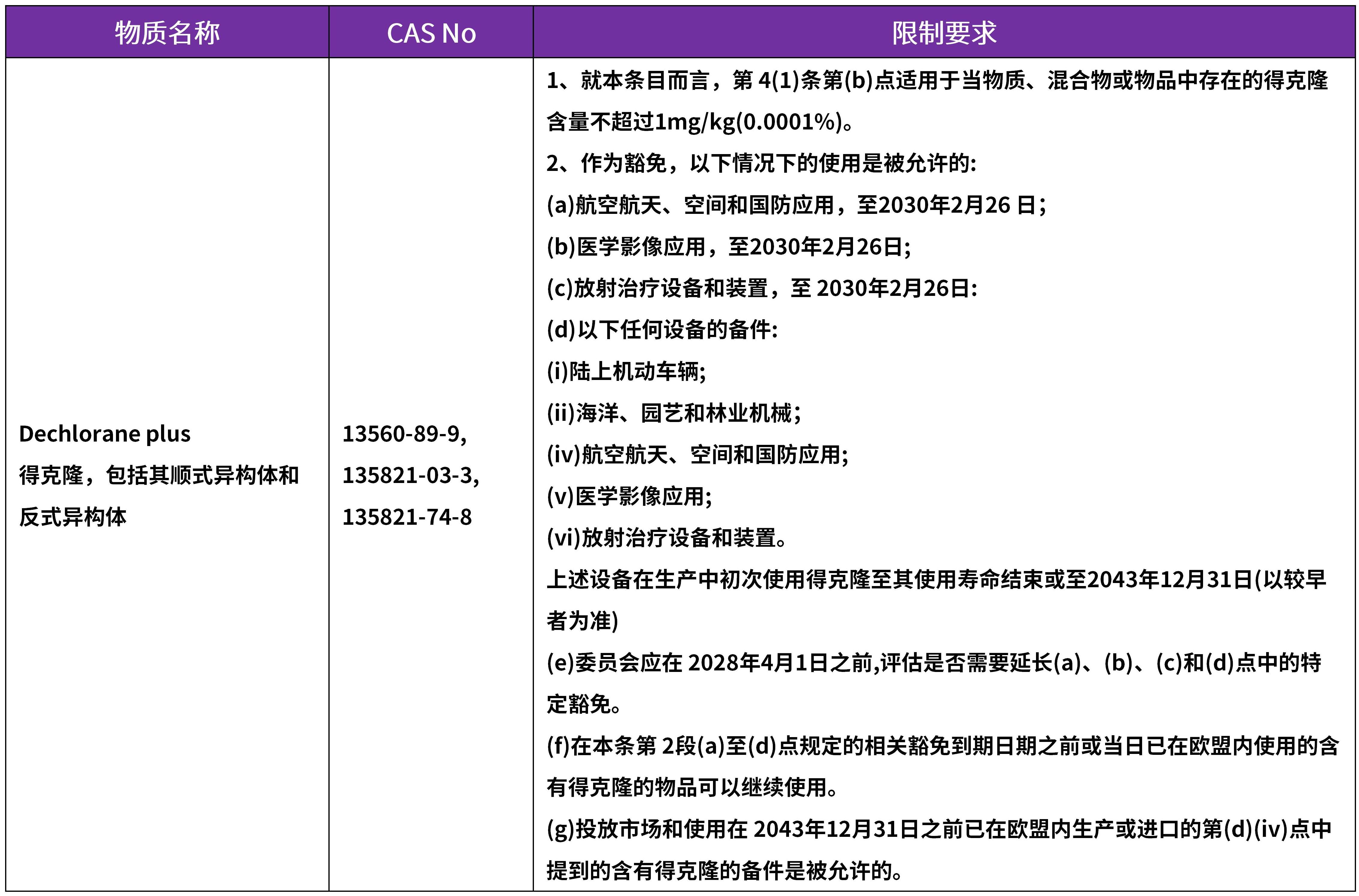 2024年6月26日,歐盟發(fā)布POPs法規(guī)修訂草案,擬議新增得克隆于POPs法規(guī)附件I的A部分中。該草案征求意見期為2024年6月26日至2024年7月24日,利益相關方可在此期間反饋意見。