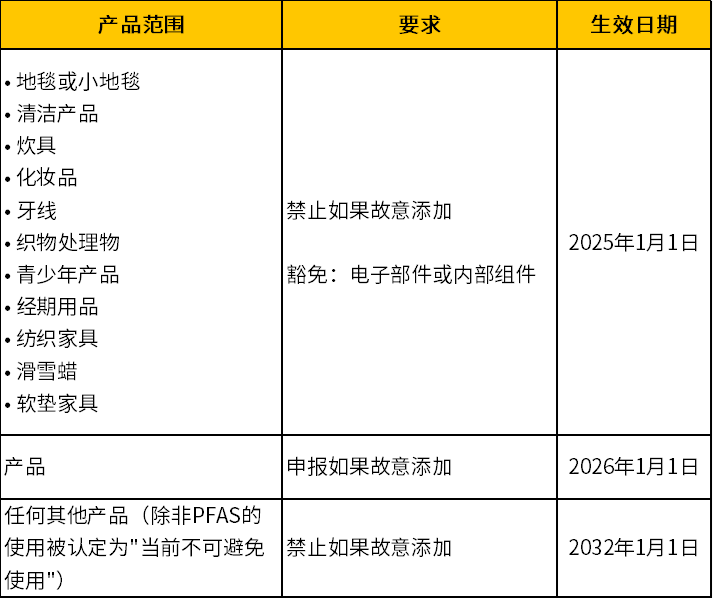 ? 新增第 11 點(diǎn):允許在歐盟內(nèi)已經(jīng)使用含有 PFOA 及其鹽類和相關(guān)化合物的以下產(chǎn)品在特定豁免期滿后繼續(xù)使用:
