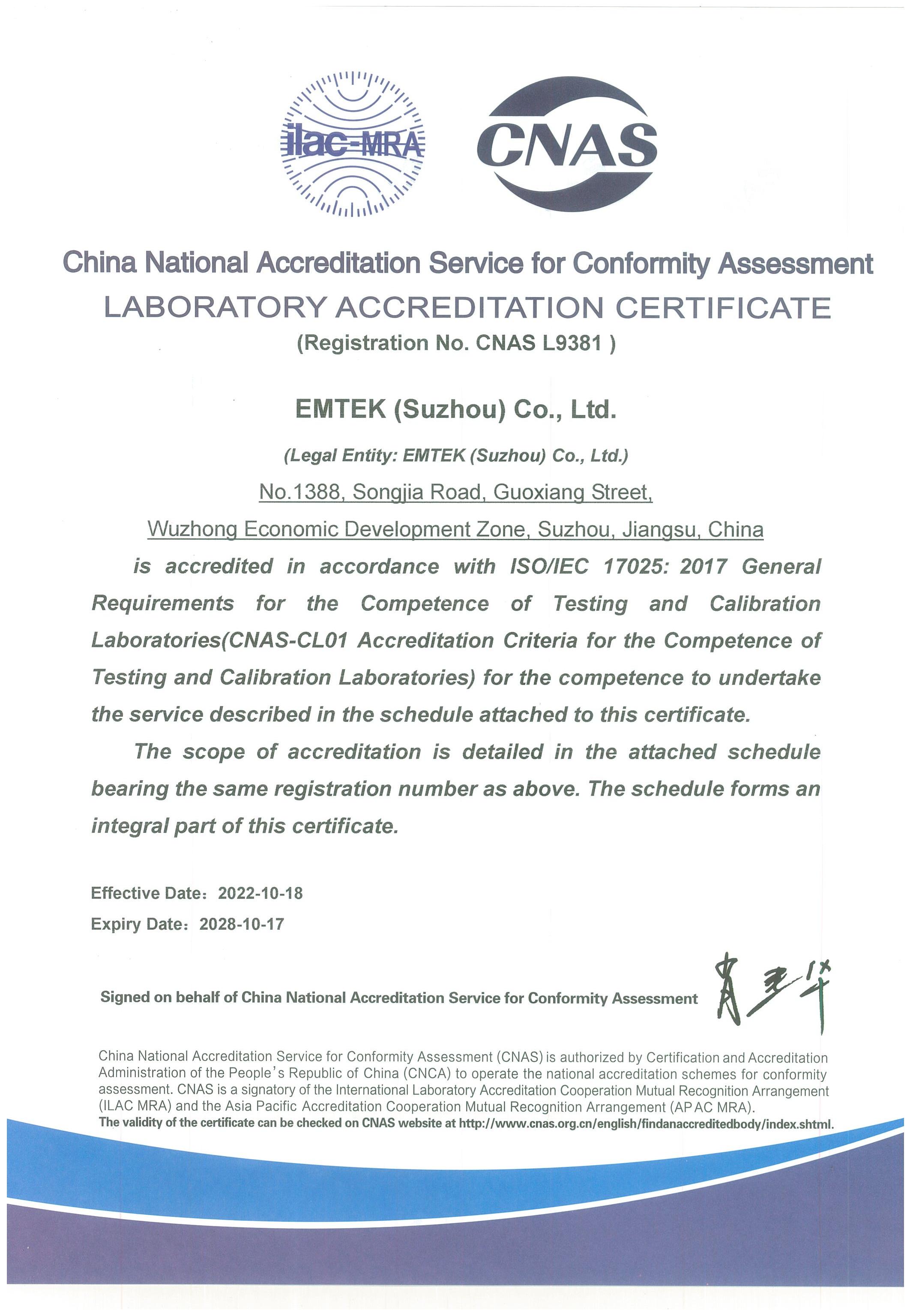 Qualifications of Suzhou Lab
