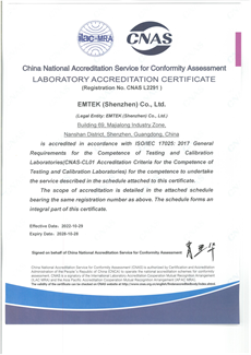 Qualifications of Dongguan Lab